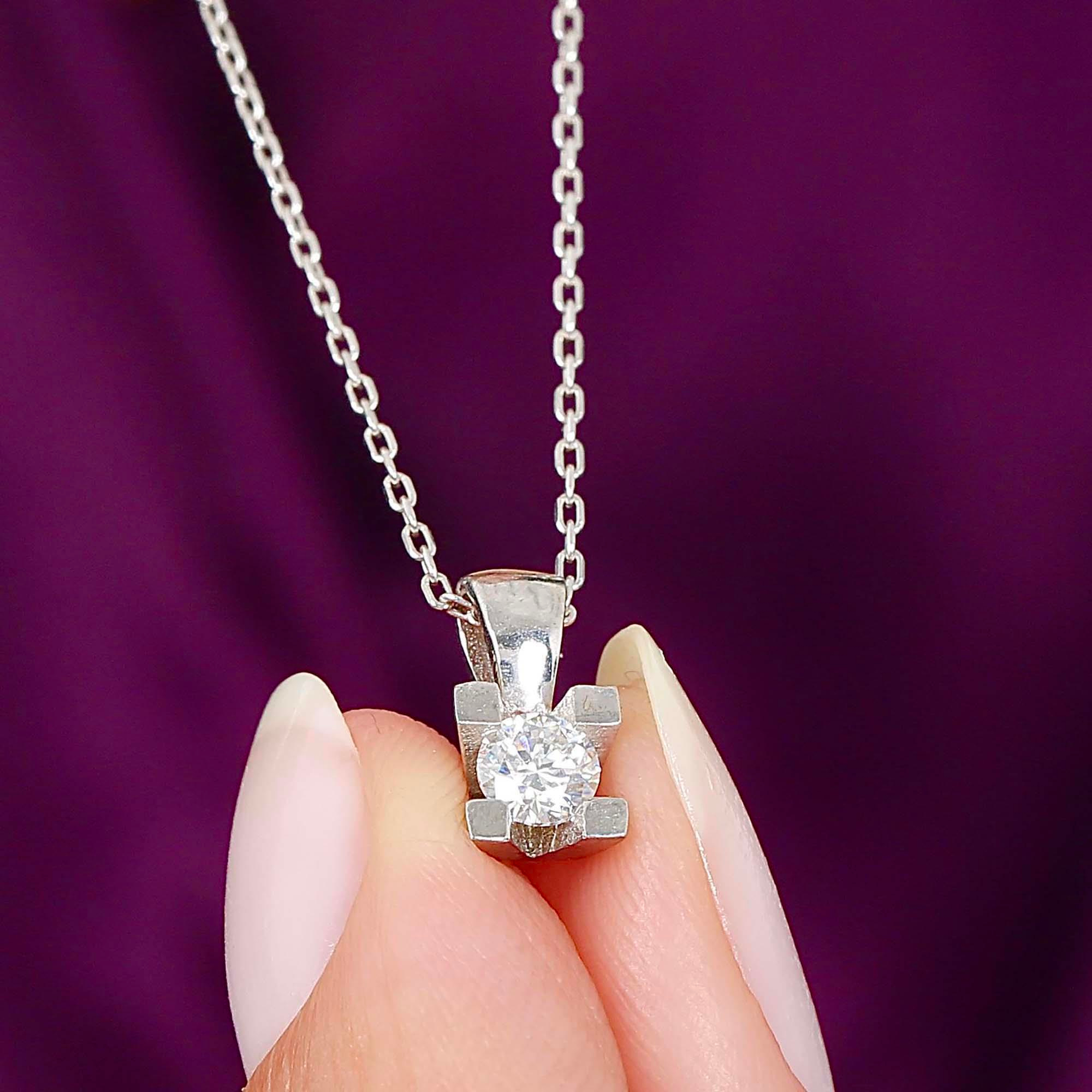Benzersiz Zarafet adını taşıyan bu kolye, klasik tek taş duruşunu daha tok ve modern bir montürle birleştirerek zamansız bir şıklık sunar. Merkezinde yer alan 0.16 karat mozanit taşı, kareye yakın tırnaklı montürün güçlü yapısı içinde güvenle parlar ve boynunuzda dikkat çekici bir odak noktası oluşturur. Sadelikten gelen bu lüks görünüm, mücevherinizin kalitesini ve taahhüt ettiği yüksek değeri anında belli eder. Bu kolye, zarafetin hem güçlü hem de minimalist olabileceğinin en güzel kanıtıdır.