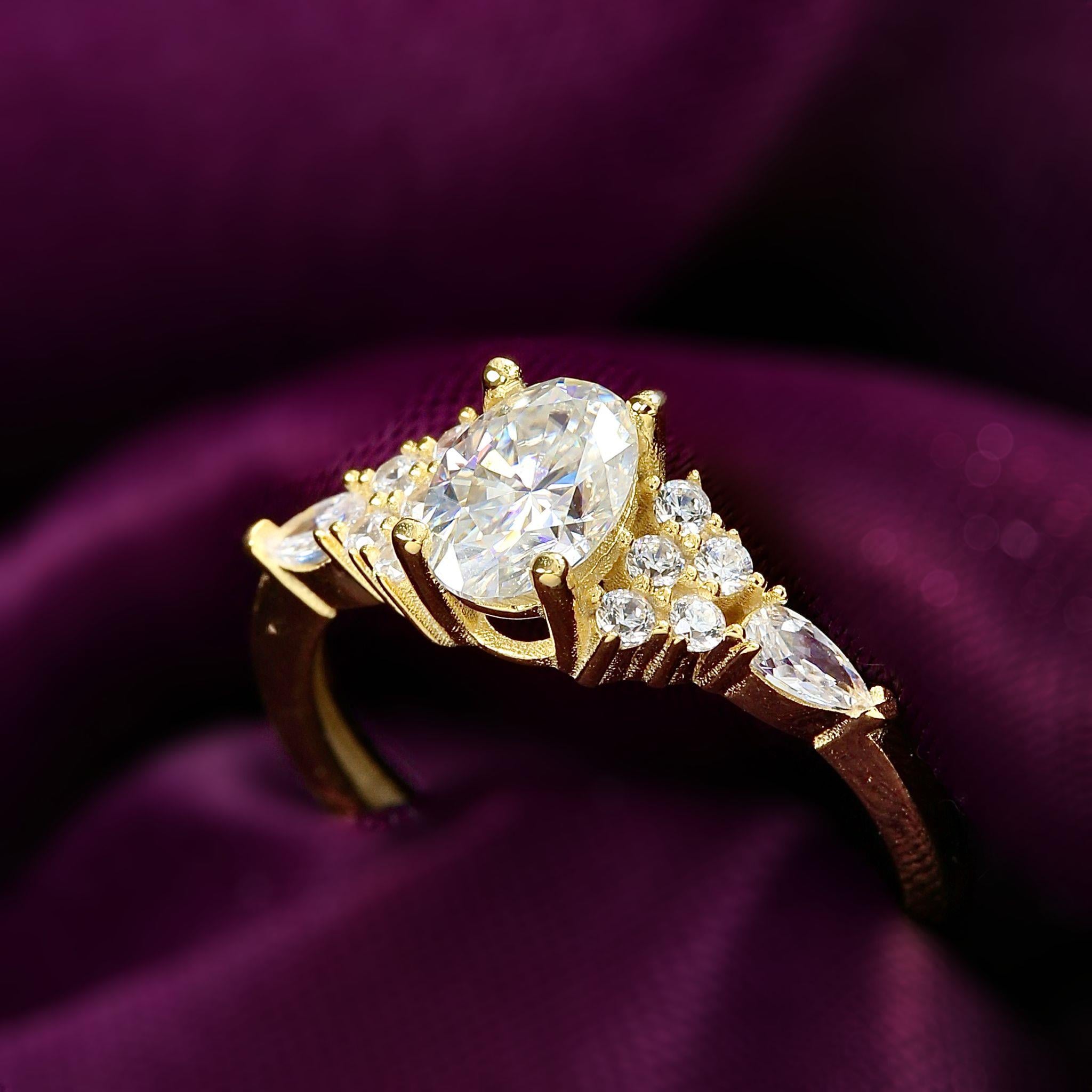 1.00 Karat Mozanit Işıltı Masalı Gold Renk Tektaş Gümüş Yüzük