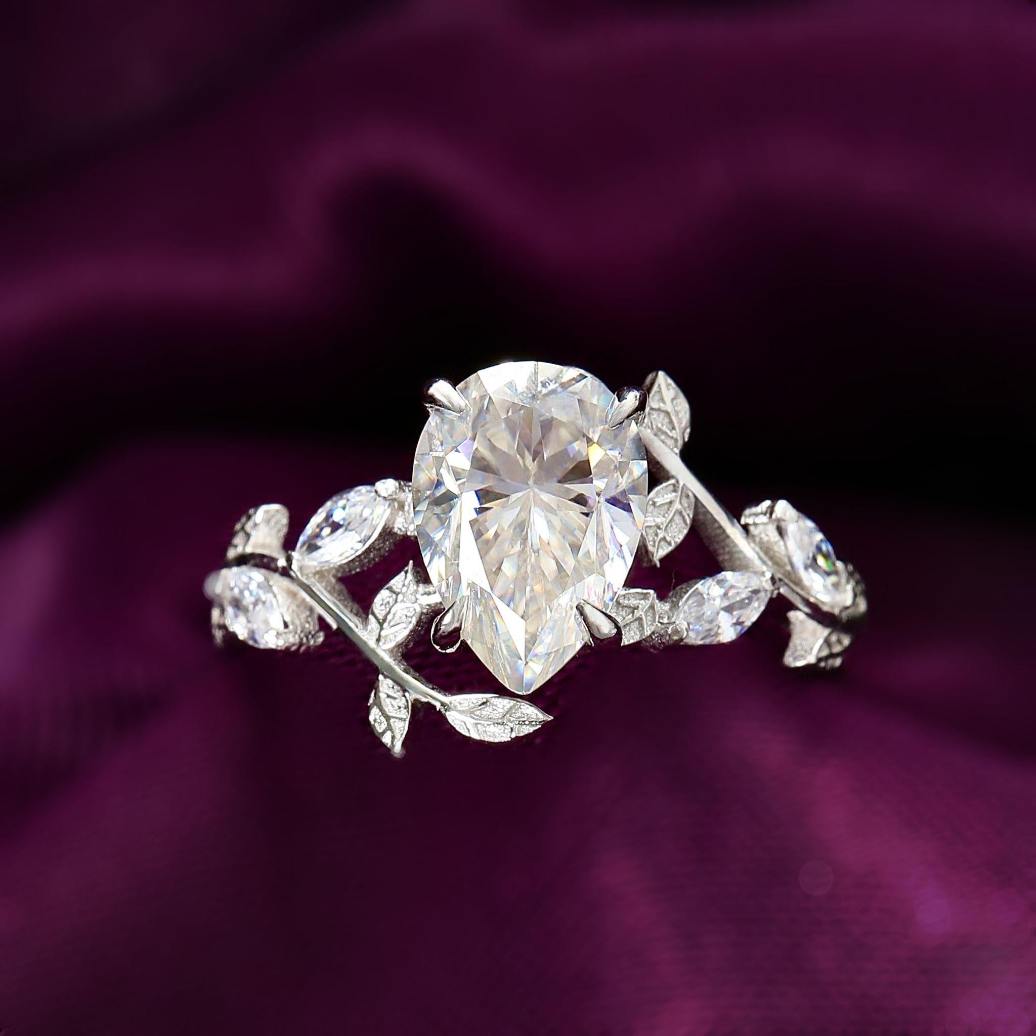 Işıklı özel kırmızı kutusu ve şık çantasıyla sunulan bu yüzük, damla kesimin parmağı daha uzun ve zarif gösteren etkisiyle birleşen doğa temalı tasarımıyla evlilik teklifleri, yıl dönümü hediyeleri veya günlük şıklığında masalsı bir dokunuş arayan kadınlar için mükemmel bir seçimdir.
