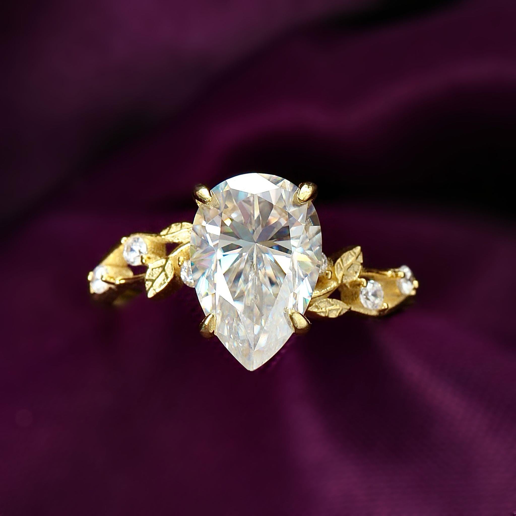 Işıklı özel kırmızı kutusu ve şık çantasıyla sunulan bu yüzük, damla kesimin feminen duruşunu bahar motifleriyle birleştiren tasarımıyla evlilik teklifleri, en özel yıl dönümü kutlamaları veya ruhundaki romantizmi dışa vurmak isteyen kadınlar için mükemmel bir tercihtir.