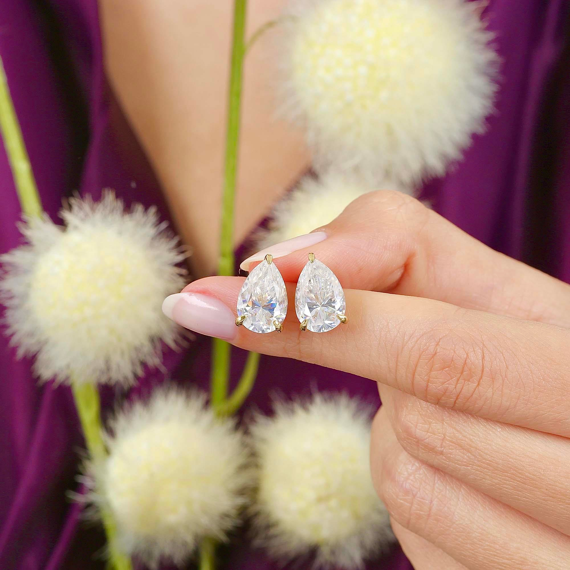 4.00 Karat Mozanit Damla Rüyası Tektaş Gold Renk Gümüş Küpe