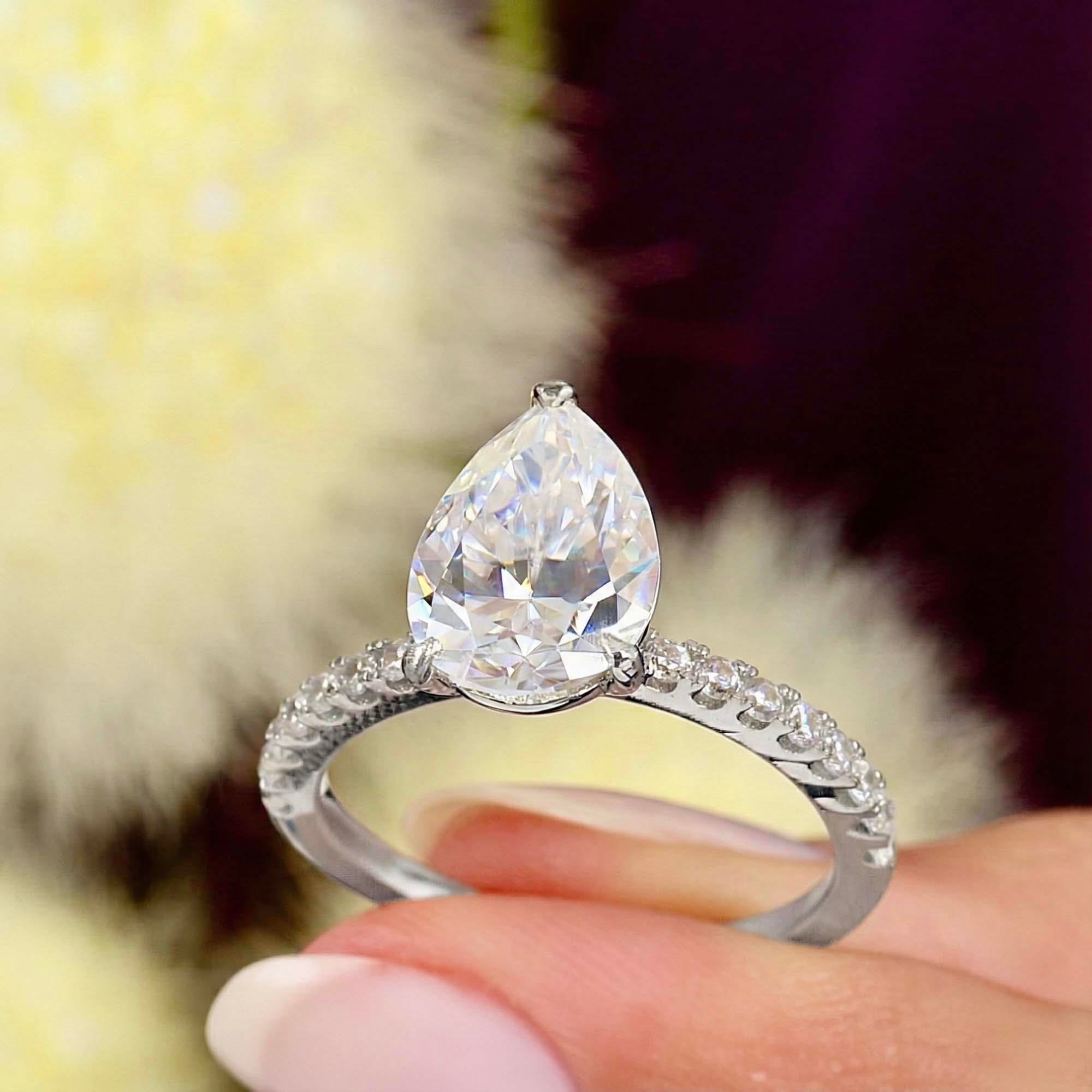Damla kesimin modern ve zarif yapısını vurgulamak için bu yüzüğü tek başına kullanabilir veya ince bir tamtur yüzükle kombinleyerek ihtişamı artırabilirsiniz.