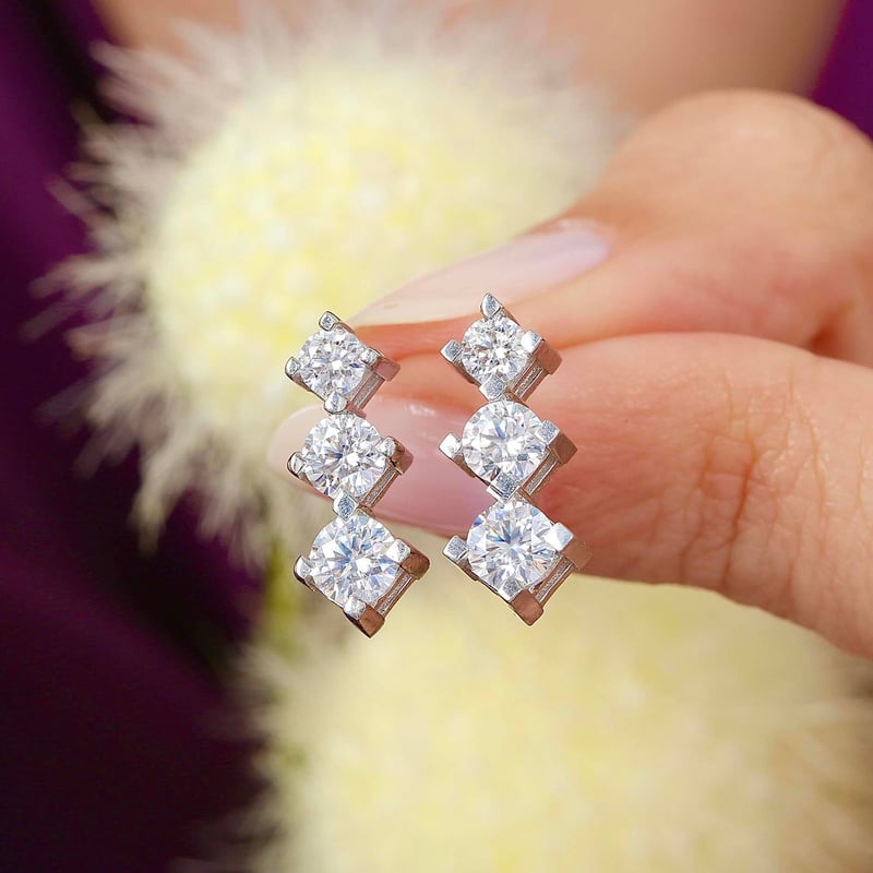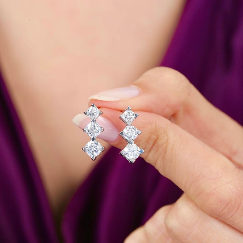 1,30 Karat Mozanit Tria Gümüş Küpe