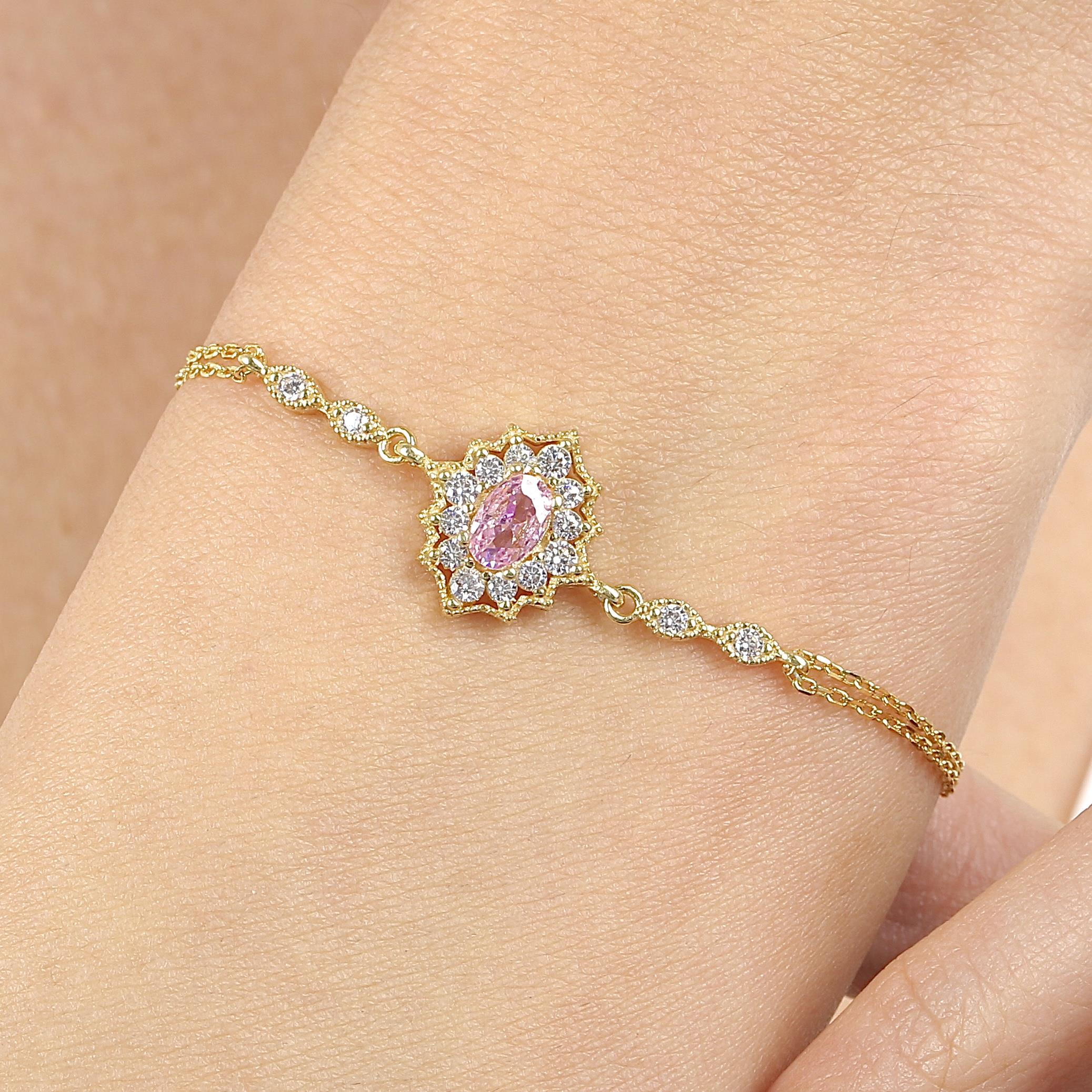 Pink Taşlı Asil Bohem Güzellik Gold Renk Vintage Gümüş Bileklik