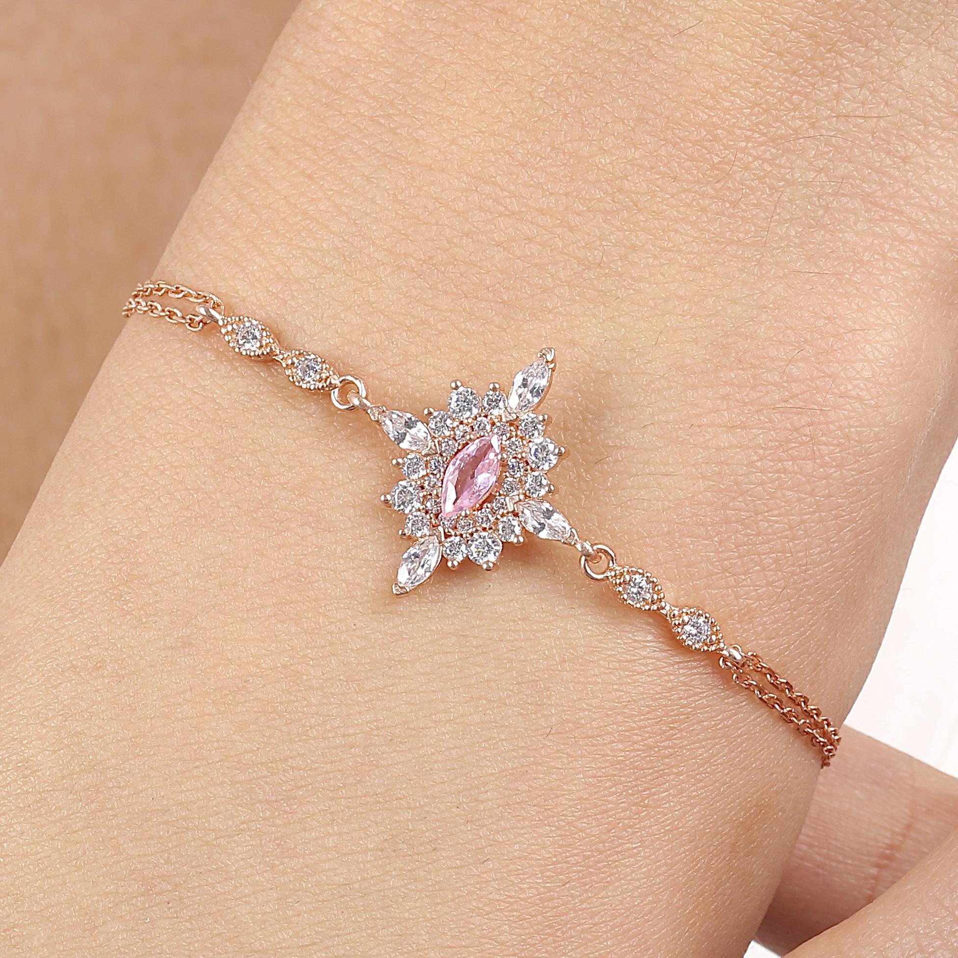 Pink Taşlı Asil Hanedan Nişanı Rose Renk Vintage Gümüş Bileklik
