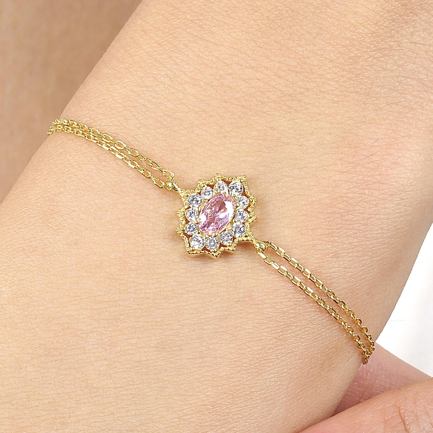 Pink Taşlı Bohem Güzellik Gold Renk Vintage Gümüş Bileklik