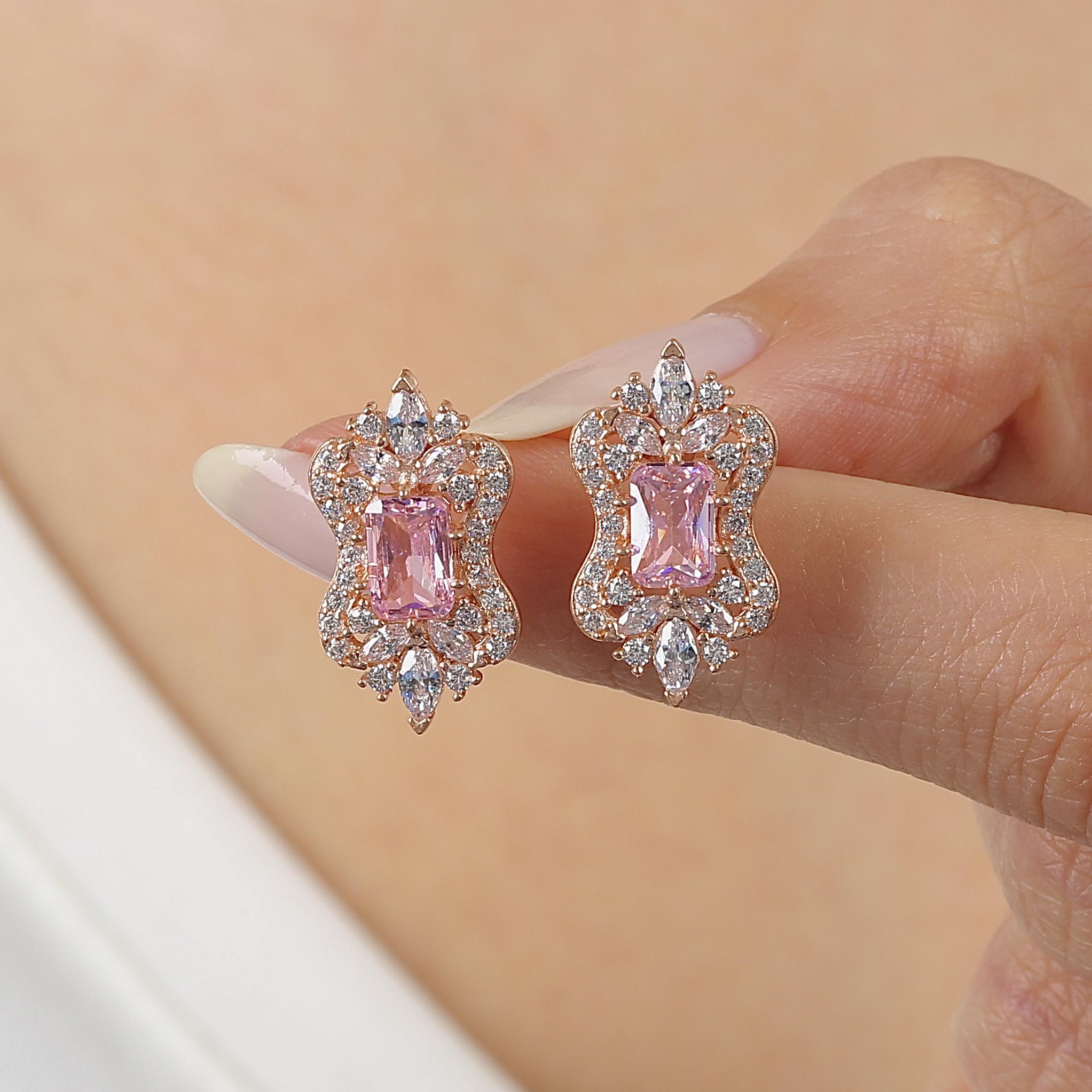 Pink Taşlı Işıltı Klasiği Rose Renk Vintage Gümüş Küpe (KP01441-MLV)