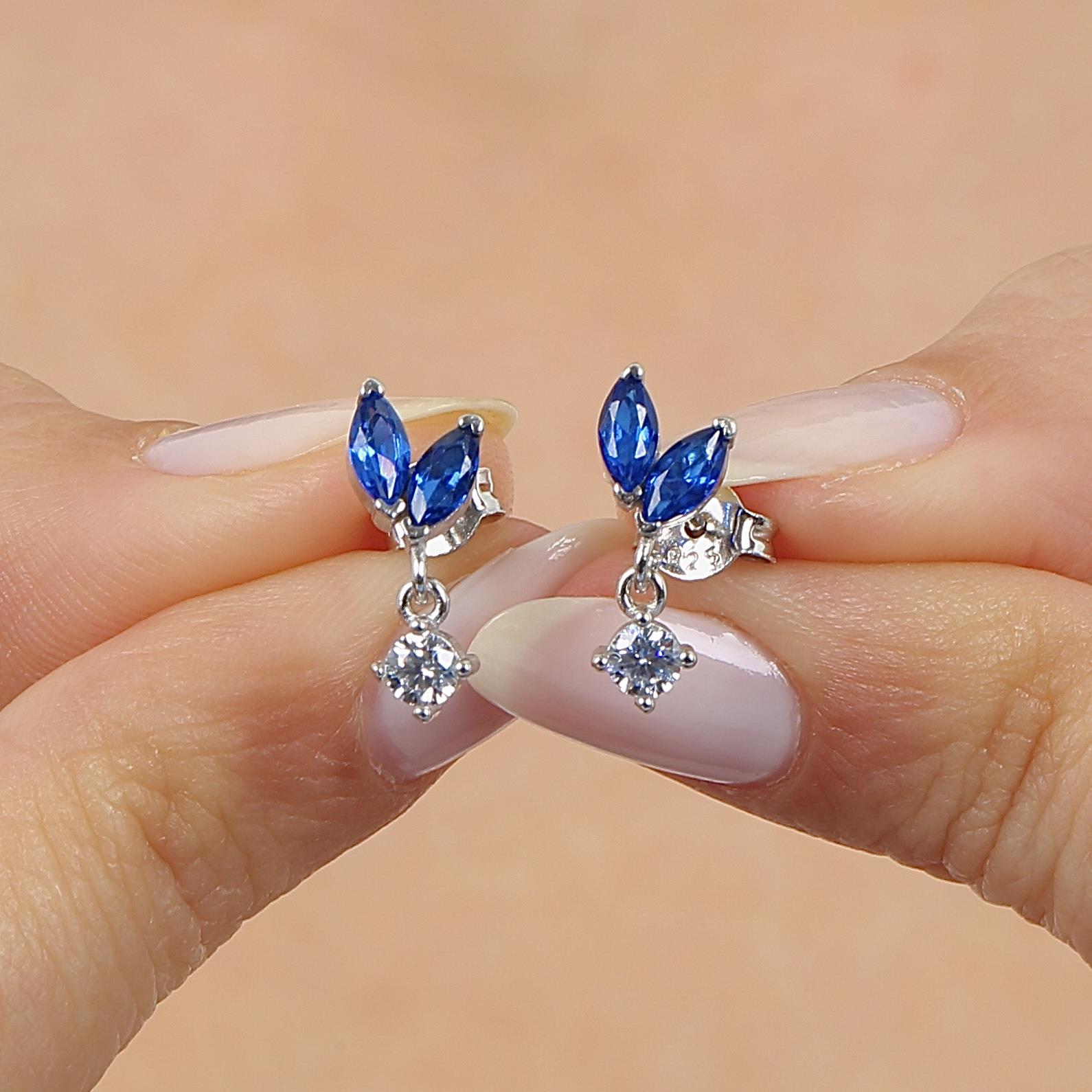 Safir Taşlı Işıltı Tomurcuğu Gümüş Küpe (KP01424-MLV)